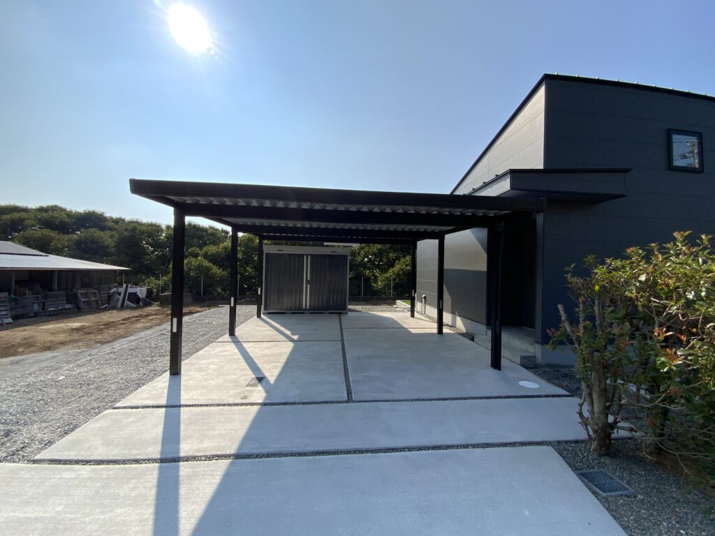 カーポートと物置が家の外観にとけ込んでいます。