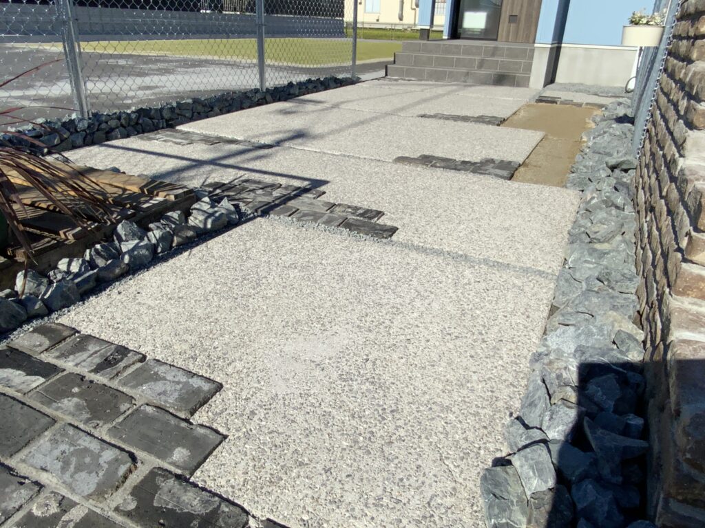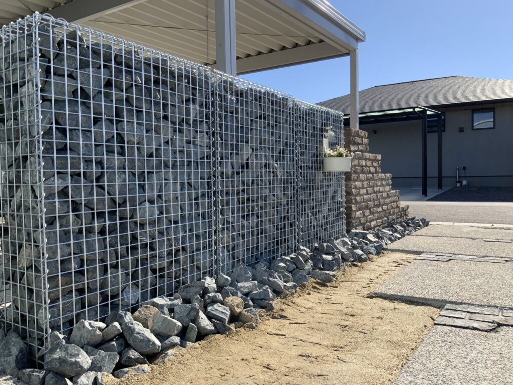 Outterior-SORA > 外観 > 宇佐市 My様邸 外構工事 宇佐市 My様邸 外構工事 2025年10月 外観門まわりアプローチ駐車スペースフェンス・目隠しフェンスベンチ・砂場・BBQ アメリカンフェンス・ガビオーネなどオシャレでカッコよい玄関まわり。 ガビオーネとレンガウォール アンティークレンガと洗出しのアプローチ ・玄関まわり ・階段状のレンガウォールとガビオーネ 人工芝 姫高麗芝 カタマスペシャル « 前の記事へ トップページへ戻る